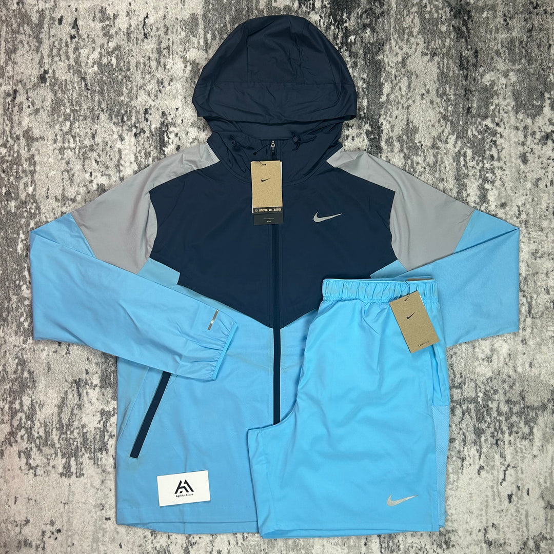 Nike Windrunner Jacket Aquarius Blue & Nike Challenger Shorts Set